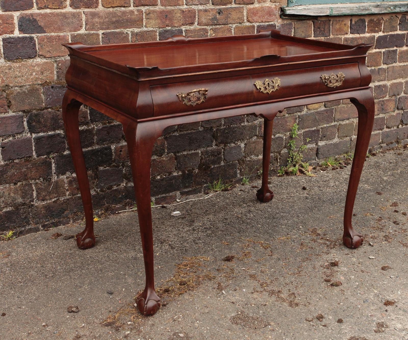 Offered for sale is this 19th Century Victorian antique mahogany single drawer silver table, with galley around the top and in very nice condition. An unusual item.